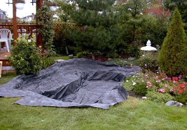 liner back over the top of the edging stones and cover