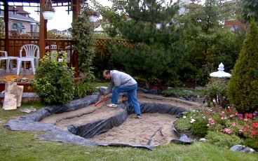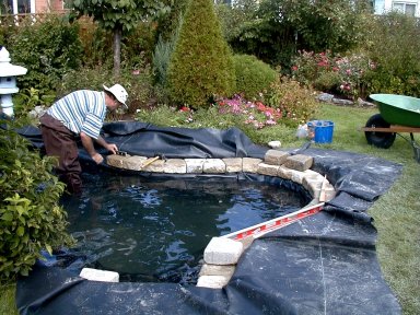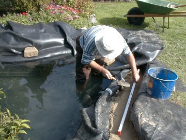 As the pond fills, you have to fold the liner so that it